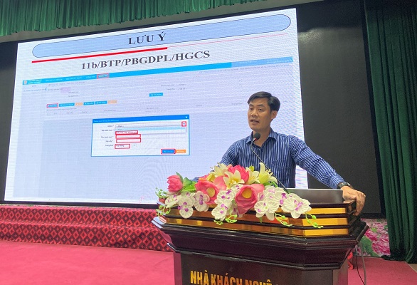 Hội nghị tập huấn cũng dành một thời lượng phù hợp để đồng chí Nguyễn Bùi Phú, kỹ sư công nghệ thông tin, chuyên viên Phòng Thống kê, Cục Kế hoạch – Tài chính hướng dẫn công chức tư pháp – hộ tịch cấp xã trên địa bàn tỉnh Nghệ An lập báo cáo thống kê và giải đáp các vướng mắc thường gặp trong quá trình thực hiện báo cáo trên Phần mềm thống kê ngành Tư pháp.
