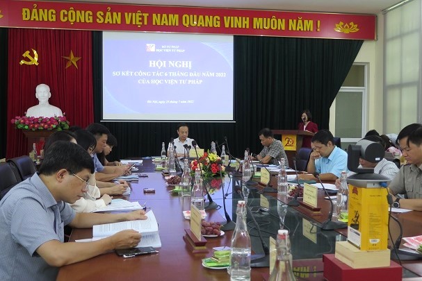 Chiều 25/7, Học viện Tư pháp – Bộ Tư pháp đã tổ chức Hội nghị sơ kết công tác 6 tháng đầu năm 2022. Thứ trưởng Bộ Tư pháp Đặng Hoàng Oanh tham dự Hội nghị qua hình thức trực tuyến. Chủ trì Hội nghị là Giám đốc Học viện Tư pháp Nguyễn Xuân Thu.
