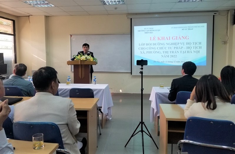 Phát biểu tại Lễ khai giảng, lãnh đạo Sở Tư pháp Thành phố Hà Nội và lãnh đạo Trường Cao đẳng Luật Miền Bắc nhấn mạnh sự cần thiết của việc tổ chức bồi dưỡng nghiệp vụ hộ tịch; đồng thời, yêu cầu các học viên thực hiện nghiêm túc các quy chế của lớp học. Lớp bồi dưỡng sẽ diễn ra trong 07 ngày theo chương trình bồi dưỡng nghiệp vụ hộ tịch do Bộ Tư pháp ban hành. Theo chương trình, học viên sẽ được nghe các giảng viên có uy tín công tác tại Bộ Tư pháp trao đổi về các nội dung như: Tổng quan về hộ tịch và quản lý nhà nước về hộ tịch; Xây dựng, quản lý và khai thác, sử dụng cơ sở dữ liệu hộ tịch điện tử; Đăng ký kết hôn, cấp giấy xác nhận tình trạng hôn nhân; Đăng ký thay đổi, cải chính, bổ sung hộ tịch, xác định lại dân tộc; Ghi vào sổ hộ tịch việc thay đổi hộ tịch; Kỹ năng giao tiếp và công tác tiếp dân trong đăng ký và quản lý hộ tịch; Đăng ký khai tử; Đăng ký nuôi con nuôi trong nước; Đăng ký giám hộ; và Đăng ký khai sinh. Ngoài ra, các học viên cũng sẽ được nghe giảng viên trao đổi kinh nghiệm, giải đáp khó khăn thắc mắc trong quá trình thực thi công vụ đối với công tác hộ tịch.