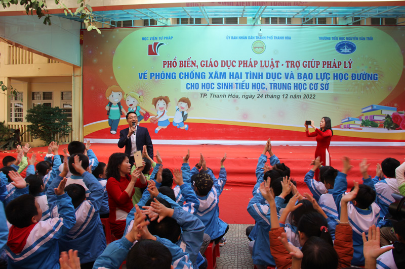 Sáng 24/12/2022, tại Trường tiểu học Nguyễn Văn Trỗi (TP. Thanh Hoá), Học viện Tư pháp tổ chức buổi tuyên truyền, phổ biến, giáo dục pháp luật, trợ giúp pháp lý về phòng, chống xâm hại tình dục và bạo lực học đường cho học sinh tiểu học và trung học cơ sở.