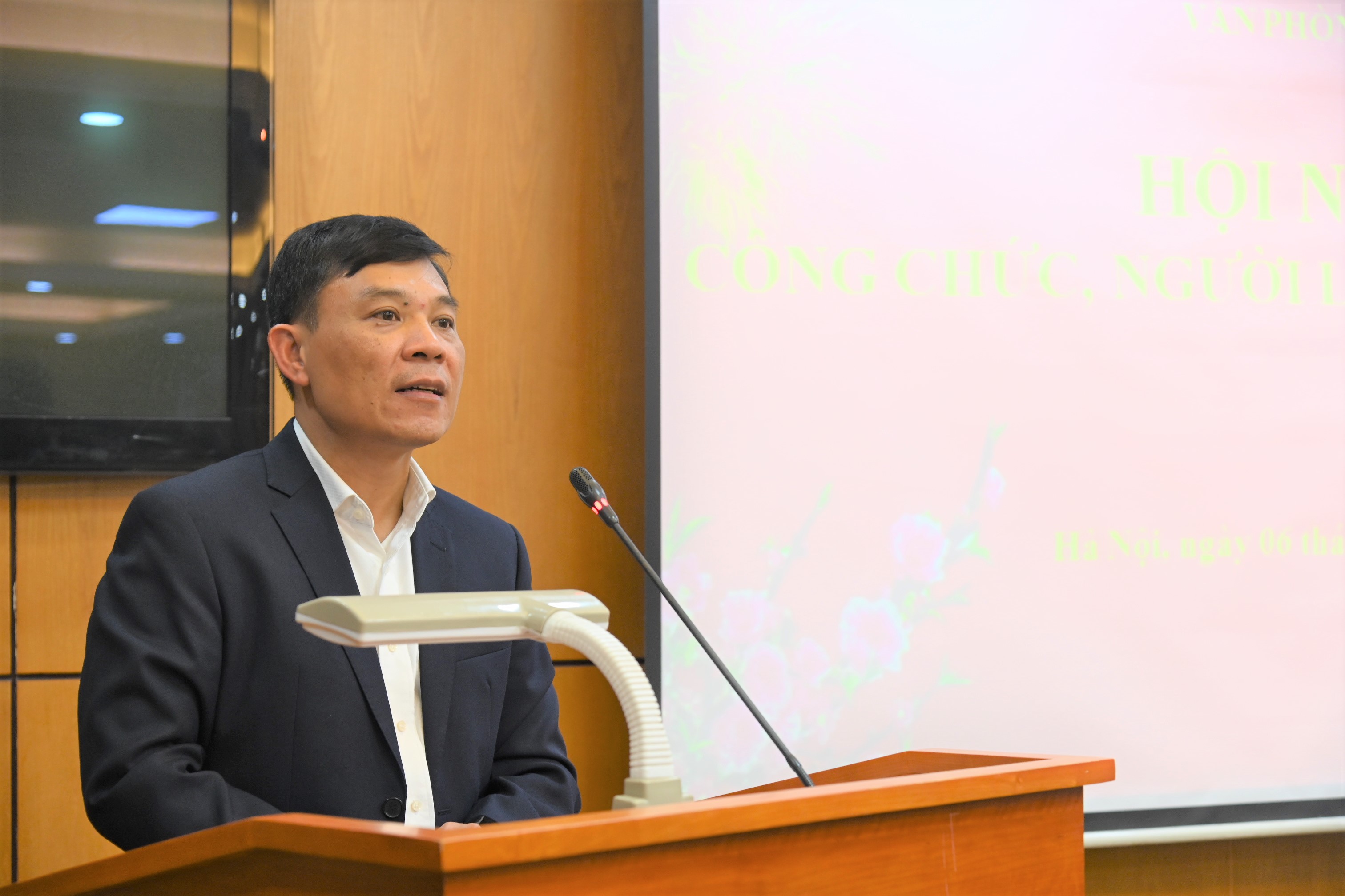 Chiều 6/1, Văn phòng Bộ đã tổ chức Hội nghị Công chức, người lao động năm 2022. Chánh Văn phòng Nguyễn Quốc Hoàn, Phó Chánh Văn phòng Đỗ Xuân Quý, Phó Chánh Văn phòng Phan Thị Thu Phương đồng chủ trì Hội nghị.