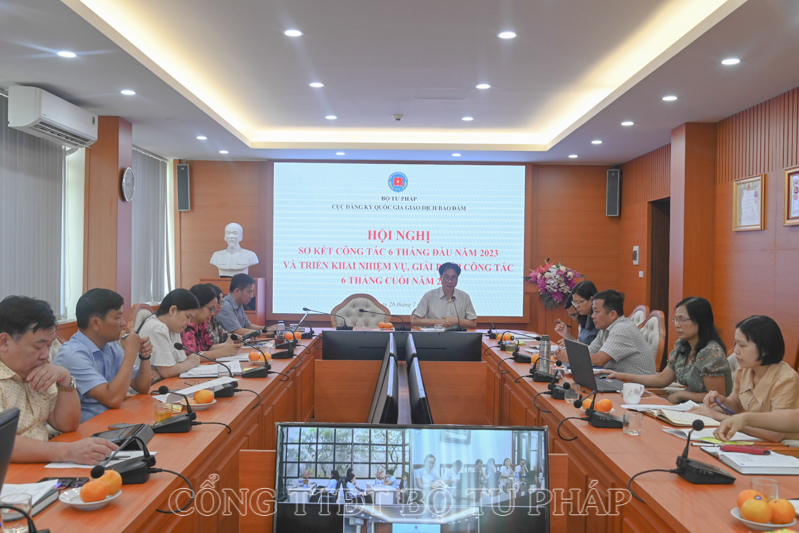 Chiều 26/7, Cục Đăng ký quốc gia giao dịch bảo đảm tổ chức Hội nghị Sơ kết công tác 6 tháng đầu năm 2023 và triển khai nhiệm vụ, giải pháp công tác 6 tháng cuối năm 2023. Hội nghị do đồng chí Phạm Tuấn Ngọc, Cục trưởng Cục Đăng ký quốc gia giao dịch bảo đảm chủ trì và có sự tham dự của đồng chí Lê Tuấn Phong, Phó Chánh Văn phòng Bộ cùng tập thể Lãnh đạo, cán bộ, công chức, viên chức, người lao động Cục và đại diện một số Trung tâm Đăng ký giao dịch, tài sản thuộc Cục. Hội nghị được tổ chức theo hình trức trực tiếp kết hợp trực tuyến.