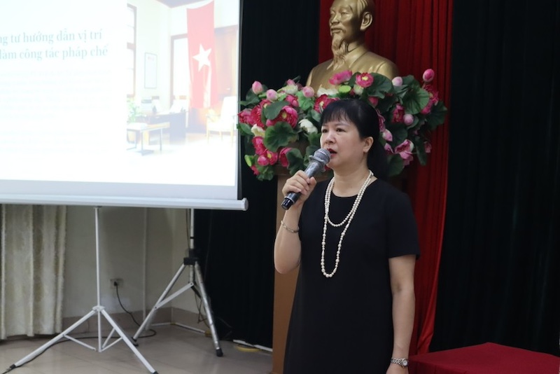 Tại Hội nghị, bà Đỗ Thị Thanh Hương, Phó Cục trưởng Cục Kiểm tra văn bản và Quản lý xử lý vi phạm hành chính đã thông tin về nội dung vị trí việc làm về công tác pháp chế trong cơ quan, tổ chức hành chính và đơn vị sự nghiệp công lập quy định tại Thông tư 02/2025/TT-BTP và nội dung về mã số, tiêu chuẩn chuyên môn, nghiệp vụ và xếp lương đôi với các ngạch pháp chế viên quy định tại Thông tư 03/2025/TT-BTP.