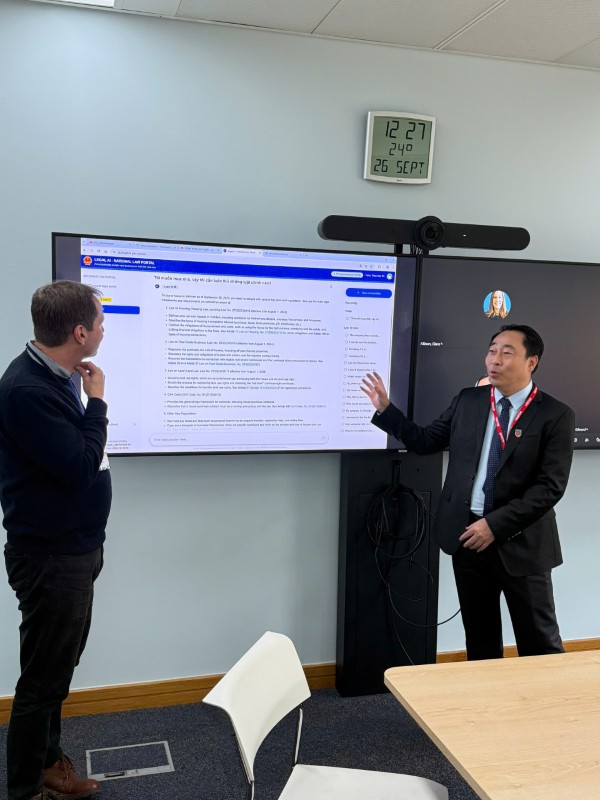 Nhân buổi làm việc, ông Lê Vệ Quốc cũng thay mặt Đoàn công tác giới thiệu và mời đại diện Cơ quan Lưu trữ Quốc gia Vương quốc Anh trải nghiệm tính năng AI Pháp luật đang được tích hợp trên Cổng Pháp luật quốc gia (https://phapluat.gov.vn/) của Việt Nam. Sau khi sử dụng, phía đối tác đánh giá cao tính năng này, cho rằng đây là một ví dụ thú vị và điển hình về ứng dụng công nghệ mới, trí tuệ nhân tạo trong việc hiện đại hóa hệ thống pháp luật và quản lý dữ liệu pháp lý, đồng thời trao đổi nhiều ý tưởng về khả năng áp dụng công nghệ AI để hỗ trợ các cơ quan lập pháp, hành pháp và tư pháp trong tương lai.