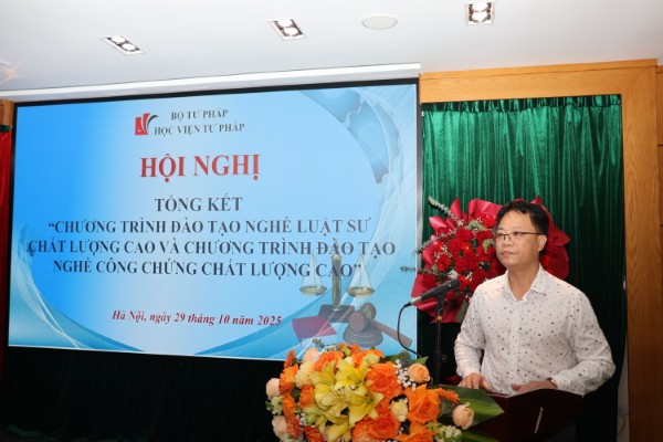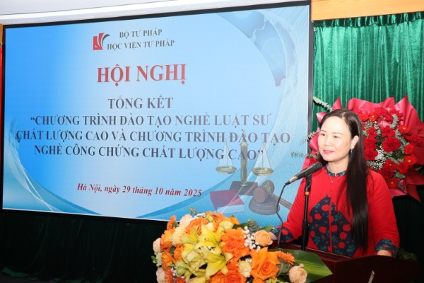 Ngày 29/10/2025, tại Hà Nội, Học viện Tư pháp tổ chức Hội nghị tổng kết Chương trình đào tạo nghề luật sư chất lượng cao và Chương trình đào tạo nghề công chứng chất lượng cao.