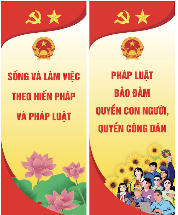 Các mẫu pano, banner, standee truyền thông hưởng ứng Ngày Pháp luật Việt Nam do Bộ Tư pháp thiết kế