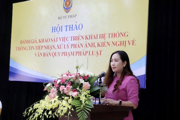 Phát biểu khai mạc Hội thảo, bà Nguyễn Thị Thu Hòe, Phó Cục trưởng Cục Kiểm tra văn bản và Quản lý xử lý vi phạm hành chính cho biết, việc nâng cấp Hệ thống là yêu cầu cấp thiết nhằm đáp ứng yêu cầu đổi mới, nâng cao chất lượng tiếp nhận, xử lý phản ánh, kiến nghị về văn bản QPPL. Thực tiễn triển khai cho thấy, hệ thống hiện hành còn nhiều hạn chế như: chức năng chưa đầy đủ, thiếu chức năng thông báo, cảnh báo tới người dùng; thiếu tính liên thông; chưa hỗ trợ hiệu quả công tác xử lý, thống kê, phân tích dữ liệu và giám sát quá trình phản hồi; việc sắp xếp, tổ chức bộ máy nhà nước thời gian vừa qua theo chỉ đạo của Đảng, Quốc hội, Chính phủ dẫn đến việc thay đổi trong hoạt động, tổ chức của các cơ quan, hệ thống pháp luật…