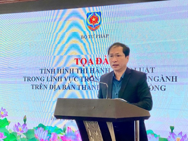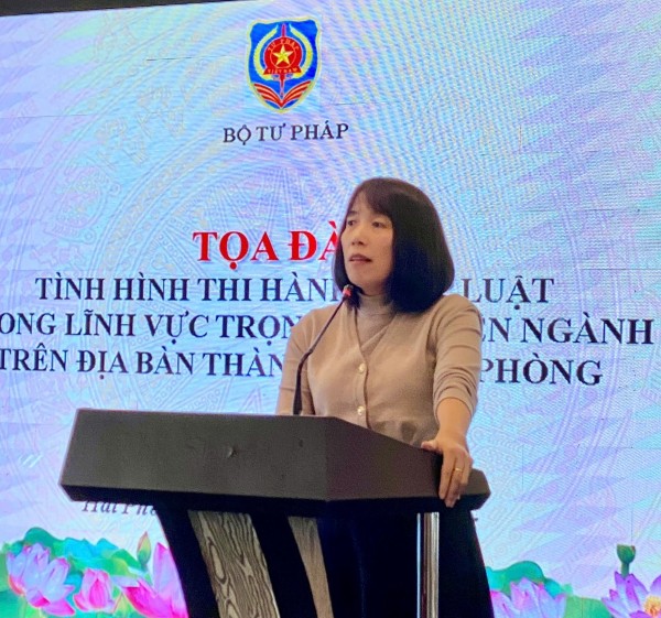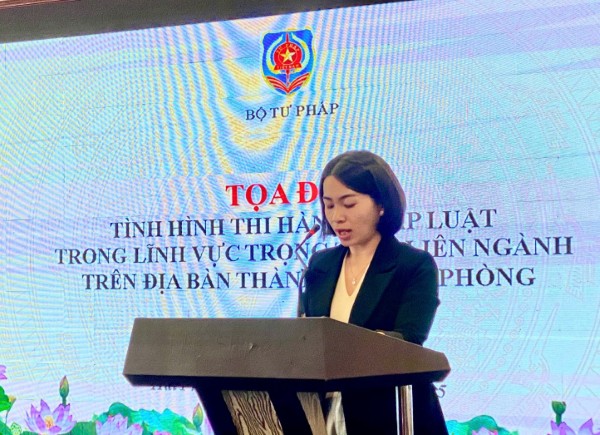 Tọa đàm đã tập trung lắng nghe tham luận của Sở Tư pháp, Sở Nông nghiệp và Môi trường, Sở Tài chính về tình hình thi hành pháp luật trên địa bàn thành phố Hải Phòng, trong đó có 01 tham luận về đánh giá chung công tác theo dõi tình hình thi hành pháp luật trong lĩnh vực trọng tâm, liên ngành năm 2025 trên địa bàn thành phố Hải Phòng và 03 tham luận về tình hình thi hành pháp luật trên địa bàn thành phố Hải Phòng trong các lĩnh vực: (i) Phòng chống khai thác thủy sản bất hợp pháp, không báo cáo, không theo quy định (IUU); (ii) Bảo vệ môi trường biển, hải đảo và (iii) Tình hình thực hiện các chính sách hỗ trợ người dân, người lao động, người sử dụng lao động, doanh nghiệp, hợp tác xã, hộ kinh doanh trong bối cảnh hậu COVID-19.