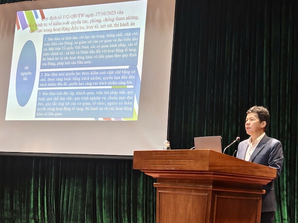 Đồng chí Võ Công Chánh, Trưởng Ban Nội chính Thành ủy Đà Nẵng phát biểu, quán triệt tại hội nghị