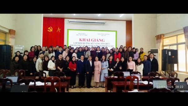 Lớp học được tổ chức từ ngày 12/3/2026 đến ngày 13/3/2026 gồm các chuyên đề: Kỹ năng kiểm tra, rà soát văn bản quy phạm pháp luật; Tổng quan về tổ chức thi hành văn bản quy phạm pháp luật; Kỹ năng tham mưu, tổ chức thi hành pháp luật; Kỹ năng hướng dẫn áp dụng văn bản quy phạm pháp luật; Hướng dẫn thi hành Luật Công chức, Luật Viên chức, Luật Phòng bệnh, Luật Dân số, Luật Khám bệnh, chữa bệnh...
