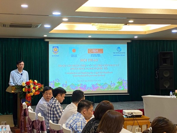 Trong hai ngày 09 - 10/4/2026 tại tỉnh Ninh Bình, Cục Pháp luật quốc tế và Giải quyết tranh chấp đầu tư quốc tế (Bộ Tư pháp) đã tổ chức chuỗi Hội thảo (Hội thảo tham vấn hoàn thiện Sổ tay trợ giúp pháp lý và Hội thảo chia sẻ kiến thức và kinh nghiệm quốc tế về trợ giúp pháp lý). Đây là các hoạt động thuộc dự án “Tăng cường trợ giúp pháp lý cho người nghèo và đối tượng yếu thế” do Ngân hàng Thế giới tài trợ.