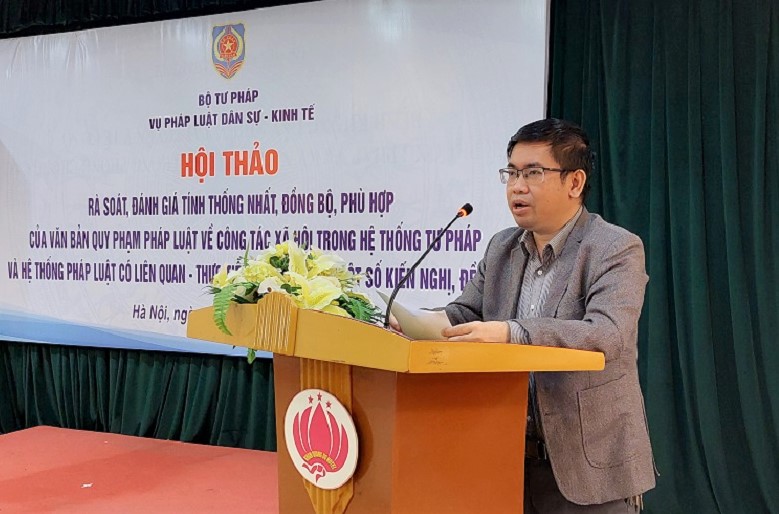 Sáng 2/12, Bộ Tư pháp đã tổ chức Hội thảo “Rà soát, đánh giá tính thống nhất, đồng bộ, phù hợp của văn bản quy phạm pháp luật về công tác xã hội trong hệ thống tư pháp và hệ thống pháp luật có liện quan - thực tiễn thực hiện và một số kiến nghị, giải pháp”. Ông Cao Đăng Vinh, Phó Vụ trưởng Vụ Pháp luật Dân sự – kinh tế chủ trì Hội thảo.