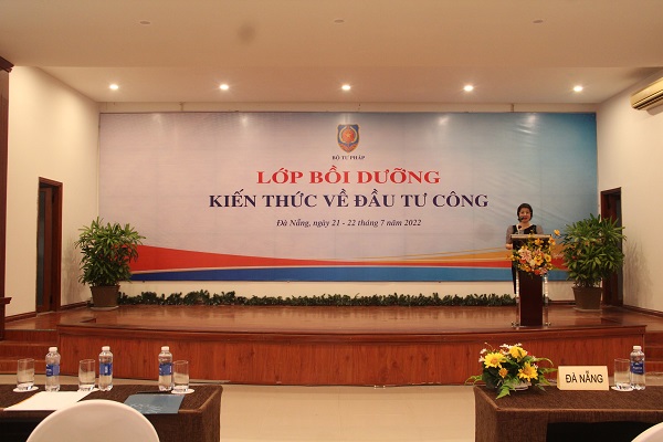 Ngày 21/7/2022, tại thành Phố Đà Nẵng, Bộ Tư pháp đã Khai giảng Lớp bồi dưỡng kiến thức về đầu tư công với sự tham dự của 200 đại biểu, học viên là lãnh đạo, công chức làm công tác quản lý đầu tư thuộc Cục Kế hoạch - Tài chính, Tổng cục Thi hành án dân sự; lãnh đạo, công chức các đơn vị thuộc Bộ: Văn phòng Bộ, Cục Trợ giúp pháp lý, Cục Công nghệ thông tin; Lãnh đạo, công chức của 56 Cục Thi hành án dân sự tỉnh, thành phố trực thuộc Trung ương được giao làm chủ đầu tư dự án khởi công mới hoặc có công trình được đầu tư giai đoạn 2021-2025 thuộc các dự án gộp liên tỉnh. Được sự ủy quyền của Lãnh đạo Bộ, Đồng chí Phan Anh Tuấn, Cục trưởng Cục Kế hoạch - Tài chính dự và chỉ đạo Lớp bồi dưỡng.