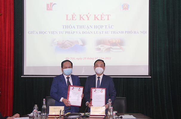 Chiều ngày 28/02, tại trụ sở Học viện Tư pháp, Học viện Tư pháp và Đoàn Luật sư thành phố Hà Nội đã chính thức ký kết Thỏa thuận hợp tác giữa hai bên. Đây là Thỏa thuận hợp tác đầu tiên giữa Học viện Tư pháp và Đoàn Luật sư thành phố Hà Nội và cũng là Thỏa thuận hợp tác đầu tiên của Đoàn Luật sư thành phố Hà Nội nhiệm kỳ X. Tham gia Lễ ký kết, về phía Học viện Tư pháp có TS. Nguyễn Xuân Thu – Bí thư Đảng ủy, Giám đốc Học viện và đại diện lãnh đạo một số đơn vị thuộc Học viện Tư pháp. Về phía Đoàn Luật sư thành phố Hà Nội có TS. LS. Đào Ngọc Chuyền – Phó Chủ tịch Liên đoàn Luật sư Việt Nam, Chủ nhiệm Đoàn Luật sư thành phố Hà Nội cùng các luật sư trong Ban chủ nhiệm Đoàn Luật sư Thành phố (Luật sư Nguyễn Xuân San, Luật sư Nguyễn Hoàng Tiến, Luật sư Nguyễn Văn Hà, Luật sư Lê Đăng Tùng, Luật sư Phạm Thanh Bình và Luật sư Nguyễn Mai Anh).