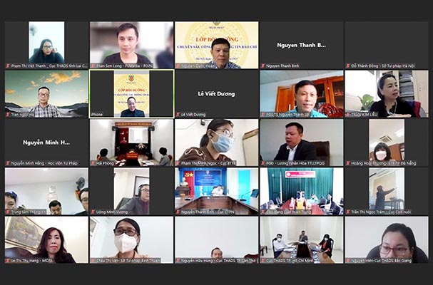 Nhằm góp phần củng cố, nâng cao kiến thức, kỹ năng về phát ngôn và cung cấp thông tin cho báo chí cho Thủ trưởng, Lãnh đạo các đơn vị thuộc Bộ; Lãnh đạo Sở Tư pháp, Cục Thi hành án dân sự 16 tỉnh, thành phố và công chức, viên chức làm đầu mối thực hiện công tác truyền thông tại các đơn vị, chiều ngày 23/11, Bộ Tư pháp tổ chức Lớp bồi dưỡng chuyên sâu về công tác thông tin báo chí theo hình thức trực tuyến với sự tham gia giảng dạy của đồng chí Lê Thị Thu Hằng – Trợ lý Bộ trưởng, Vụ trưởng Vụ Thông tin báo chí, Người phát ngôn Bộ Ngoại giao và PGS.TS Nguyễn Thành Lợi – Ủy viên BCH Hội Nhà báo Việt Nam, Tổng Biên tập Tạp chí Người làm báo.