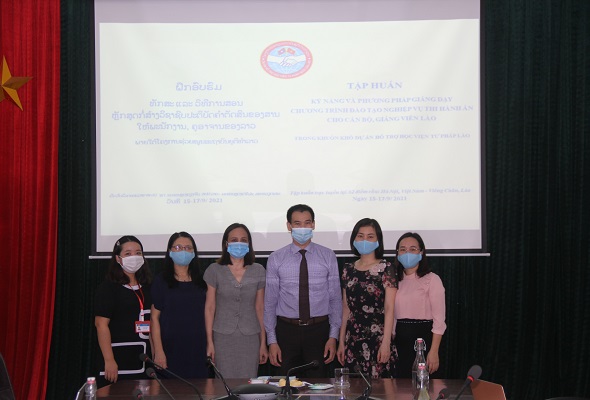 Thực hiện Kế hoạch hoạt động năm 2021 của Dự án Hỗ trợ Học viện Tư pháp Quốc gia Lào, ngày 22/9/2021, Học viện Tư pháp Việt Nam phối hợp với Học viện Tư pháp Quốc gia Lào tổ chức Lớp tập huấn kỹ năng và phương pháp giảng dạy chương trình đào tạo nghiệp vụ tư pháp: thẩm phán, kiểm sát viên, luật sư. Lớp tập huấn được tổ chức theo phương thức trực tuyến giữa điểm cầu Hà Nội và Viêng Chăn.