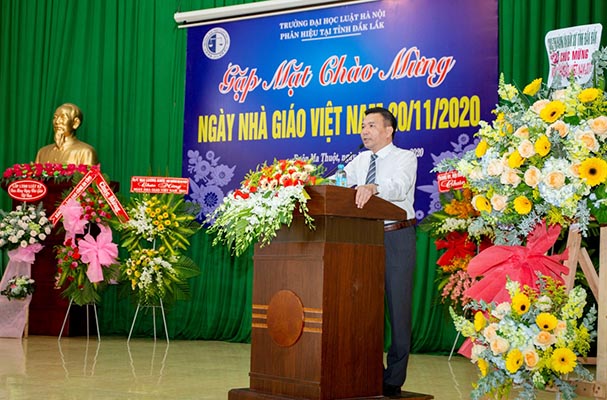 Chiều 19/11, Phân hiệu Trường Đại học Luật Hà Nội tại tỉnh Đắk Lắk (Phân hiệu) tổ chức gặp chào mừng ngày Nhà giáo Việt Nam 20/11. Đến dự, về phía Bộ Tư pháp có: ông Mai Lương Khôi - Thứ trưởng Bộ Tư pháp, đại diện một số đơn vị thuộc Bộ Tư pháp; về phía địa phương tỉnh Đắk Lắk có: ông Nguyễn Minh Thuận - Giám đốc Sở Tư pháp; ông Vũ Tuấn Anh - Phó Cục trưởng Cục Thi hành án Dân sự; đại diện lãnh đạo một số cơ quan, ban ngành trên địa bàn tỉnh Đắk Lắk và một số trường cao đẳng, đại học trên đại bàn thành phố Buôn Ma Thuột; về phía Trường Đại học Luật Hà Nội có: TS. Chu Mạnh Hùng - Bí thư Đảng ủy, Quyền Chủ tịch Hội đồng Trường và lãnh đạo một số đơn vị thuộc Trường; về phía Phân hiệu có: ThS. Nguyễn Hùng Vừa - Bí thư Chi bộ, Phó Giám đốc; TS. Nguyễn Mạnh Hùng - Phó Giám đốc Phân hiệu, toàn thể viên chức, người lao động và cùng đông đảo học viên, sinh viên đang học tập tại Phân hiệu.