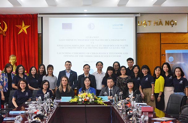 Ngày 05/11/2020, Trường Đại học Luật Hà Nội đã phối hợp với tổ chức EU JULE và UNICEF trân trọng tổ chức “Lễ ra mắt giáo trình Tư pháp đối với người chưa thành niên và khai giảng khóa học thứ 3 về tư pháp đối với người chưa thành niên" tại trường Đại học Luật Hà Nội. Đến tham dự buổi lễ có đại diện của EU JULE, UNICEF, Ban quản lý Dự án Bộ Tư pháp, các đơn vị có liên quan thuộc Bộ Tư pháp, đại diện các cơ sở đào tạo Luật tại Hà Nội như Học viện Cảnh sát nhân dân, Trường Đại học Kiểm sát, Học viện Toà án, Khoa Luật trực thuộc Đại học Quốc gia Hà Nội, Học viện Tư pháp... Về phía Trường Đại học Luật Hà Nội có sự tham gia của đại diện Ban giám hiệu, các tác giả viết giáo trình, các giảng viên tham gia giảng dạy và các em sinh viên tham gia khoá học.
