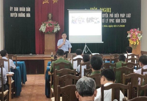 Ngày 03/7/2020, Trường trung cấp Luật Đồng Hới phối hợp với UBND huyện Hướng Hóa, tỉnh Quảng Trị tổ chức Hội nghị tập huấn nghiệp vụ về xử lý vi phạm hành chính (VPHC) và phổ biến, giáo dục pháp luật cho hơn 100 học viên là cán bộ, công chức làm công tác tham mưu xử phạt vi phạm hành chính tại các phòng ban chuyên môn thuộc UBND huyện; lãnh đạo UBND, UBMTTQ Việt Nam, Trưởng Công an; công chức Tư pháp - Hộ tịch, Địa chính - Môi trường, Văn phòng - Thống kê các xã, thị trấn thuộc huyện Hướng Hoá.