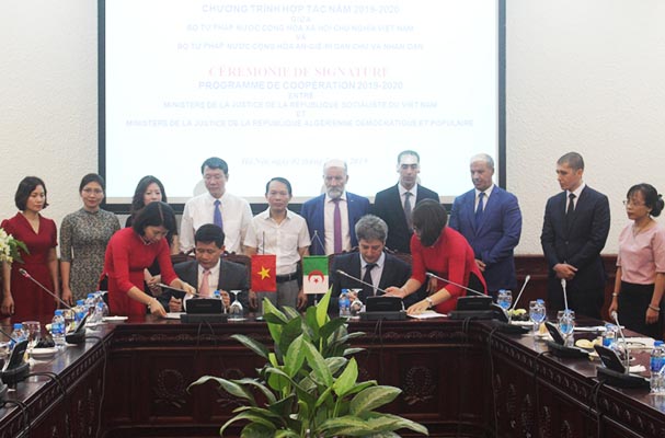 Ngày 2/7, tại trụ sở cơ quan Bộ Tư pháp đã diễn ra Lễ ký Chương trình hợp tác năm 2019 – 2020 giữa Bộ Tư pháp nước Cộng hòa XHCN Việt Nam và Bộ Tư pháp nước Cộng hòa Algeria (An-giê-ri) dân chủ và nhân dân.