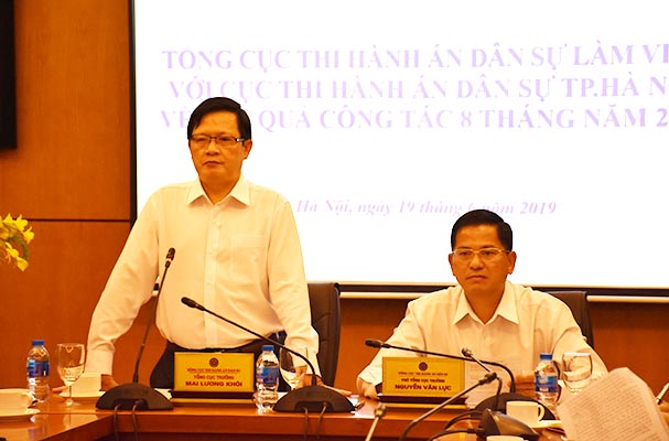 Đó là yêu cầu của Tổng cục trưởng Tổng cục THADS Mai Lương Khôi tại buổi làm việc với cán bộ chủ chốt Cục THADS TP Hà Nội về kết quả công tác 8 tháng năm 2019 nhằm tháo gỡ khó khăn vướng và đề ra các giải pháp thực hiện chỉ tiêu, nhiệm vụ những tháng cuối năm. Phó Tổng cục trưởng Tổng cục THADS Nguyễn Văn Lực cùng tham dự.