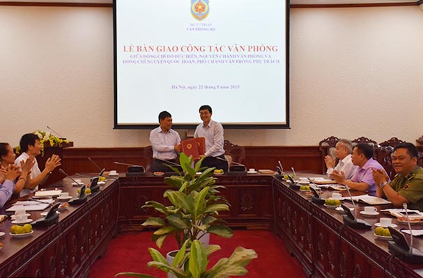 Chiều nay –22/5, tại Bộ Tư pháp đã diễn ra buổi bàn giao công tác văn phòng giữa đồng chí Đỗ Đức Hiển, – nguyên Chánh Văn phòng Bộ Tư pháp với đồng chí Nguyễn Quốc Hoàn – Phó Chánh Văn phòng Phụ trách. Buổi bàn giao có sự tham dự của đại diện một số lãnh đạo đơn vị thuộc Bộ và cán bộ công chức, viên chức, người lao động của Văn phòng Bộ.