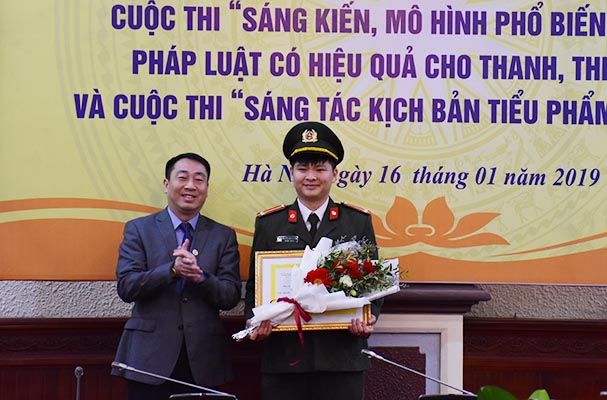 Ngày 16/1, Bộ Tư pháp đã tổ chức tổng kết và trao giải cuộc thi “Sáng kiến, mô hình phổ biến, giáo dục pháp luật (PBGDPL) có hiệu quả cho thanh, thiếu niên” và Cuộc thi “Sáng tác kịch bản tiểu phẩm pháp luật”. Các cuộc thi đã nhận được sự tham gia đông đảo của các tầng lớp nhân dân với nhiều bài thi, công trình dự thi sáng tạo, công phu, tính ứng dụng cao.