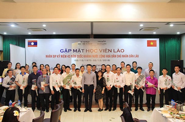 Nhân kỷ niệm 43 năm Quốc khánh nước Cộng hòa dân chủ nhân dân Lào, Học viện Tư pháp đã tổ chức gặp mặt giao lưu với các học viên Lào đang theo học lớp đào tạo nghề công chứng tại Học viện Tư pháp. Ban giám đốc Học viện Tư pháp cùng các cán bộ, viên chức của Học viện tham dự buổi gặp mặt và chúc mừng nhân dân và các học viên Lào.
