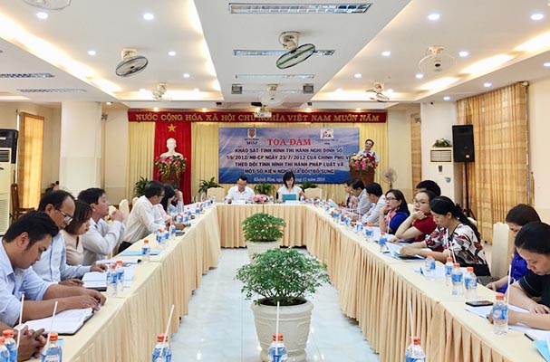 Vừa qua, Bộ Tư pháp phối hợp với Dự án Pháp luật 2020 - JICA đã tổ chức Tọa đàm “Khảo sát tình hình thi hành Nghị định số 59/2012/NĐ-CP ngày 23/7/2012 của Chính phủ về theo dõi tình hình thi hành pháp luật và một số kiến nghị sửa đổi, bổ sung” tại TP. Nha Trang, tỉnh Khánh Hòa. Tọa đàm do ông Hồ Quang Huy - Phó Cục trưởng Cục QLXLVPHC&TDTHPL và bà Tsukabe Takako - Cố vấn trưởng Dự án JICA tại Việt Nam đồng chủ trì. Tham dự Tọa đàm có đại diện Lãnh đạo Sở Tư pháp các tỉnh khu vực Nam Trung Bộ và Tây Nguyên, các Sở, ban, ngành trên địa bàn tỉnh Khánh Hòa.