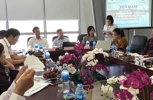 Trong khuôn khổ hợp tác giữa Bộ Tư pháp và Dự án JICA Việt Nam, trong 2 ngày 09 và ngày 10/10/2018, Vụ Pháp luật dân sự - kinh tế đã chủ trì, phối hợp với Sở Tư pháp, Tòa án nhân dân, VCCI, một số cơ quan, đơn vị, tổ chức khác tại thành phố Đà Nẵng thực hiện khảo sát thực trạng về thực thi pháp luật hợp đồng, giải quyết tranh chấp hợp đồng bằng phương thức hòa giải, trọng tài.