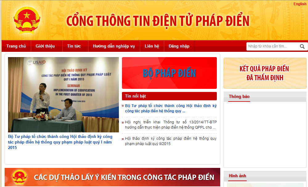 Triển khai thực hiện Pháp lệnh pháp điển hệ thống quy phạm pháp luật, Nghị định số 63/2013/NĐ-CP ngày 27/6/2013 của Chính phủ quy định chi tiết thi hành Pháp lệnh pháp điển hệ thống quy phạm pháp luật, Bộ Tư pháp đã xây dựng và đưa Cổng thông tin điện tử pháp điển sử dụng trên mạng internet (địa chỉ truy cập: phapdien.moj.gov.vn).