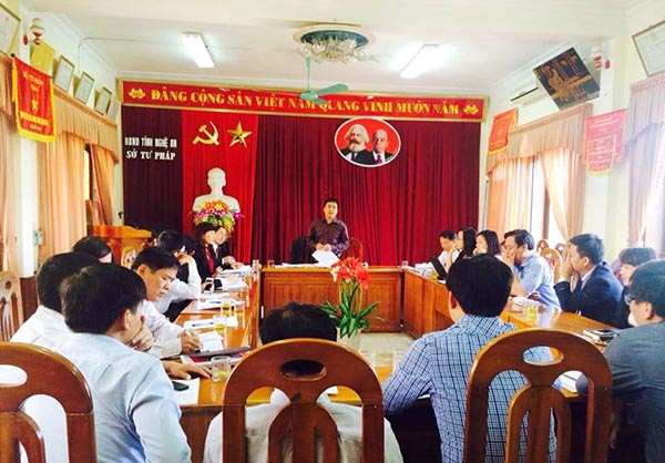 Trong 2 ngày 3, 4/11/2015, đoàn kiểm tra Cục Bổ trợ tư pháp – Bộ Tư pháp do đồng chí Vũ Hồng Dương, Phó Cục trưởng Cục Bổ trợ tư pháp, làm Trưởng đoàn làm việc tại Sở Tư pháp về lĩnh vực luật sư và công chứng trên địa bàn tỉnh Nghệ An. Cùng làm việc với đoàn có đại diện một số ngành liên quan, Lãnh đạo Sở Tư pháp và các phòng chuyên môn thuộc Sở; Ban Chủ nhiệm Đoàn Luật sư; Trưởng một số Văn phòng công chứng, và tổ chức luật sư trên địa bàn.