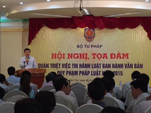 Ngày 06/11 năm 2015, tại Thành phố Cần Thơ, Bộ Tư pháp đã tổ chức Hội nghị, Tọa đàm quán triệt việc triển khai thi hành Luật ban hành văn bản quy phạm pháp luật năm 2015 khu vực phía Nam, Nam Trung Bộ và Tây Nguyên. Mục đích của Hội nghị là nhằm giới thiệu những quy định mới của Luật, quán triệt kế hoạch triển khai thi hành Luật của Chính phủ, Bộ Tư pháp và trao đổi, tọa đàm các nội dung liên quan đến Luật ban hành văn bản quy phạm pháp luật.