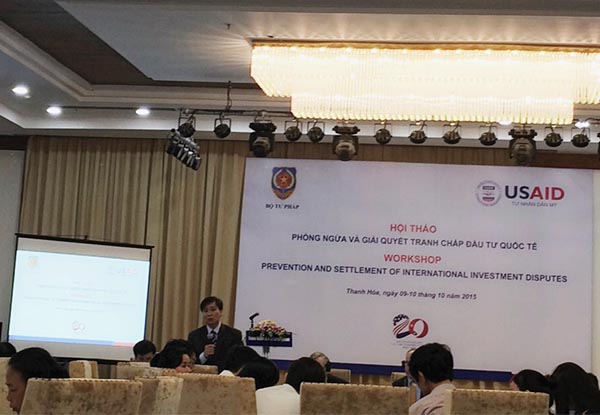 Nằm trong khuôn khổ Dự án Nhà nước nhằm tăng trưởng toàn diện năm 2014 do cơ quan phát triển quốc tế Hoa Kỳ (USAID) tài trợ, trong 2 ngày 9-10/20 vừa qua, Vụ Pháp luật quốc tế đã phối hợp với Văn phòng Dự án tổ chức Hội thảo Phòng ngừa và giải quyết tranh chấp đầu tư quốc tế.