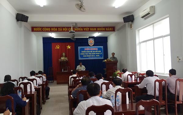 Thực hiện Quyết định số 749/QĐ-TTg ngày 01/6/2015 của Thủ tướng Chính phủ phê duyệt Đề án đổi mới công tác trợ giúp pháp lý năm 2015 - 2025 (Đề án), ngày 23/9/2015, tại Long An, Cục Trợ giúp pháp lý đã phối hợp với Sở Tư pháp Long An tổ chức Hội nghị triển khai Đề án. Đồng chí Cù Thu Anh, Phó Cục trưởng Cục Trợ giúp pháp lý và đồng chí Nguyễn Văn Lâm, Phó Giám đốc Sở Tư pháp đồng chủ trì Hội nghị.