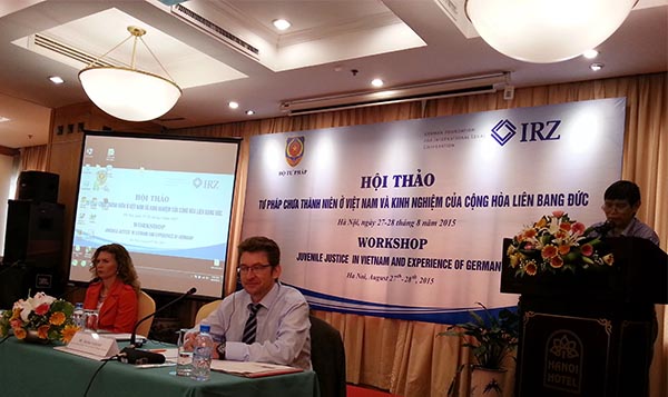 Trong khuôn khổ Chương trình hợp tác giai đoạn 2015 – 2018 giữa Việt Nam và Cộng hòa Liên bang Đức, trong hai ngày 27 và 28 tháng 8 năm 2015, Vụ Pháp luật Hình sự - Hành chính, Bộ Tư pháp phối hợp với Quỹ Hợp tác quốc tế Đức về pháp luật (IRZ) tổ chức Hội thảo về tư pháp chưa thành niên của Việt Nam và kinh nghiệm của cộng hòa liên bang Đức.