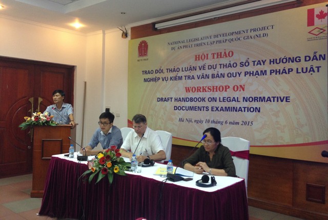 Nhằm giúp các cơ quan, người làm công tác kiểm tra văn bản nâng cao nghiệp vụ, kiến thức và hiệu quả công tác kiểm tra, Cục Kiểm tra văn bản, Bộ Tư pháp biên soạn cuốn “Sổ tay hướng dẫn nghiệp vụ kiểm tra văn bản quy phạm pháp luật”. Để hoàn thiện dự thảo Sổ tay, ngày 10/6/2015 Cục Kiểm tra văn bản đã tổ chức Hội thảo trao đổi, thảo luận về dự thảo Sổ tay hướng dẫn nghiệp vụ kiểm tra văn bản quy phạm pháp luật. Hội thảo diễn ra dưới sự chủ trì của bà Mạc Thị Hoa - Phó Cục trưởng phục trách Cục Kiểm tra văn bản, Bộ Tư pháp và ông Isabeau Vilandre - Giám đốc Văn phòng dự án Phát triển lập pháp quốc gia tại Việt Nam (National Legislative Development Project), cùng sự tham gia, góp ý của các chuyên gia có nhiều kinh nghiệm trong lĩnh vực kiểm tra văn bản QPPL và đại diện một số Bộ, ngành, địa phương.