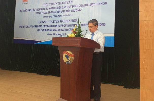 Trong khuôn khổ kế hoạch hoạt động của Dự án Tăng cường tiếp cận công lý và bảo vệ quyền tại Việt Nam do UNDP tài trợ, Bộ Tư pháp (Vụ Pháp luật hình sự hành chính) đã tổ chức hội thảo tham vấn dự thảo Báo cáo nghiên cứu đề xuất hoàn thiện các quy định của Bộ luật hình sự về các tội phạm về môi trường tại Hà Nội vào các ngày 25-26/5/2015. Thứ trưởng Đinh Trung Tụng đã tham dự và khai mạc hội thảo.