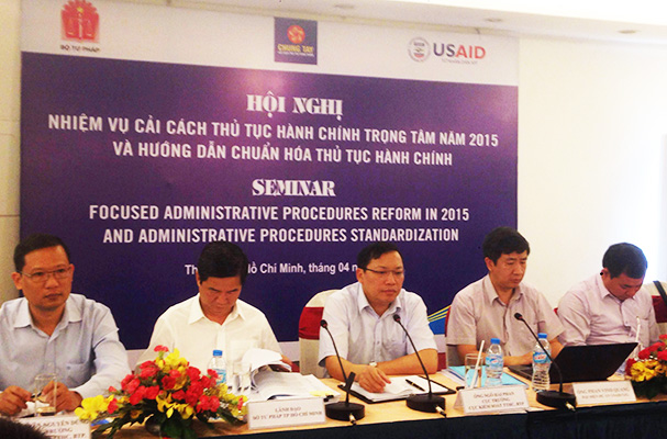Trong hai ngày 06 và 07/4/2015, tại TP.HCM, Bộ Tư pháp đã tổ chức hội nghị tập huấn “Nhiệm vụ cải cách thủ tục hành chính trọng tâm năm 2015 và hướng dẫn chuẩn hoá thủ tục hành chính” cho các tỉnh, thành khu vực phía Nam. Lãnh đạo của 20 Sở Tư pháp TP.HCM, TP. Hà Nội và các tỉnh, thành phố khu vực phía Nam và Đồng bằng sông Cửu Long đã tham dự.