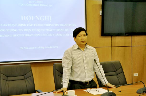 Để kịp thời đánh giá toàn diện, hiệu quả hoạt động cùng những tồn tại, hạn chế, khó khăn của các Trang thông tin thành phần thuộc Cổng Thông tin điện tử Bộ Tư pháp trong thời gian qua và đề ra giải pháp khắc phục nhằm nâng cao chất lượng, hiệu quả của các trang thông tin này trong thời gian tới, Cục Công nghệ thông tin tổ chức Hội nghị “Đánh giá hoạt động các trang thông tin thành phần thuộc Cổng thông tin điện tử Bộ Tư pháp trong 9 tháng năm 2014 và phương hướng hoạt động những tháng cuối năm”. Phó Cục trưởng Cục Công nghệ thông tin Lê Văn Duyên chủ trì Hội nghị.