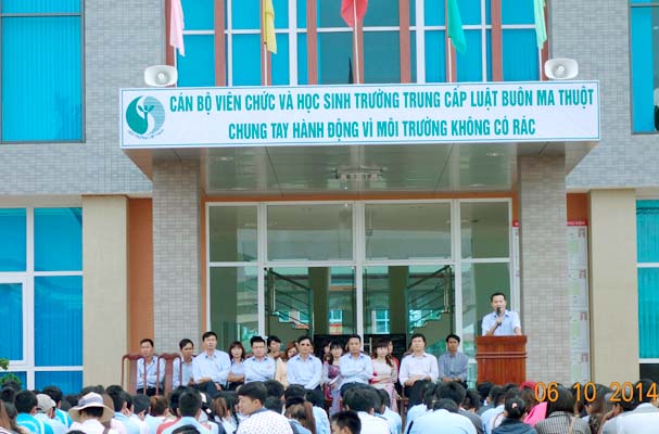 Sáng 06/10, trường Trung cấp Luật Buôn Ma Thuột đã thực hiện tuyên truyền, phổ biến các văn bản về việc tổ chức các hoạt động hưởng ứng Chiến dịch Làm cho thế giới sạch hơn năm 2014.