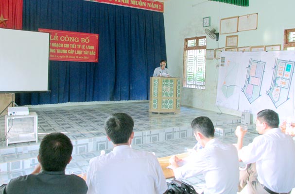 Thực hiện Quyết định số 2419/QĐ - UBND ngày 12 tháng 9 năm 2014 của UBND tỉnh Sơn La về việc phê duyệt Đồ án quy hoạch chi tiết tỷ lệ 1/500 Trường Trung cấp Luật Tây Bắc, chiều ngày 08 tháng 10 năm 2014, tại Nhà văn hóa bản Thẳm, UBND thành phố Sơn La đã phối hợp với Sở Xây dựng tỉnh Sơn La tổ chức Hội nghị công bố công khai quy hoạch dự án theo quy định của pháp luật.
