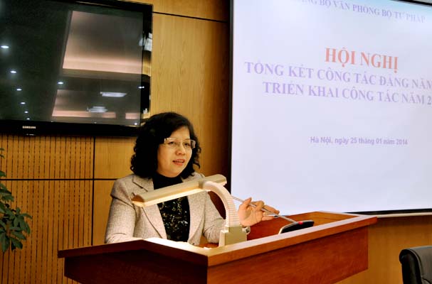 Sáng 25/1, Văn phòng Bộ Tư pháp tổ chức Hội nghị tổng kết công tác Đảng năm 2013, triển khai công tác năm 2014. Bí thư Đảng ủy Văn phòng Bộ Trần Tiến Dũng chủ trì Hội nghị. Bà Lê Thị Hoàng Yến, Ủy viên chuyên trách Đảng ủy Bộ Tư pháp tham dự Hội nghị.