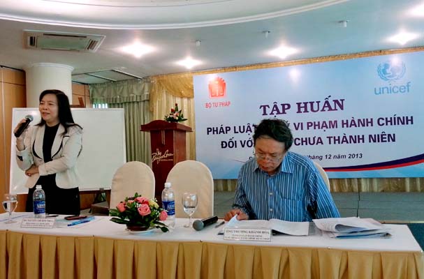 Thực hiện Quyết định số 80/QĐ-BTP ngày 16/01/2013 của Bộ trưởng Bộ Tư pháp ban hành kế hoạch hoạt động triển khai thực hiện Chương trình Quốc gia bảo vệ trẻ em năm 2013, để triển khai Luật Xử lý vi phạm hành chính, trong hai ngày 16 và 17/12/2013, Vụ Pháp luật Hình sự - Hành chính tổ chức tập huấn các quy định của pháp luật về xử lý vi phạm hành chính đối với người chưa thành niên.