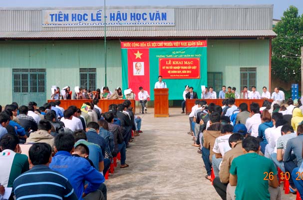 Sáng ngày 02/11/2013, Trường Trung cấp Luật Buôn Ma Thuột đã tổ chức Lễ Khai mạc kỳ thi tốt nghiệp trung cấp luật khóa IV (hệ 2 năm 2011 - 2013). Tham dự Lễ Khai mạc có Ths. Nguyễn Hùng Vừa, Bí thư Chi bộ - Phó Hiệu trưởng nhà trường, Chủ tịch Hội đồng thi; lãnh đạo các phòng, khoa; đại diện Công an thành phố Buôn Ma Thuột, Công an xã Hòa Thắng; các thầy, cô là thành viên trong Hội đồng thi và các Ban phục vụ thi cùng 149 thí sinh khóa IV.