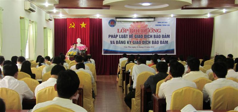 Tiếp tục hoạt động trong khuôn khổ của Chương trình hỗ trợ pháp lý liên ngành dành cho doanh nghiệp giai đoạn 2010 - 2014 (sau đây gọi là Chương trình 585), ngày 12/11, tại TP. Cần Thơ, Cục Đăng ký quốc gia GDBĐ đã phối hợp với Ban Quản lý chương trình 585 tổ chức thành công lớp tập huấn, bồi dưỡng pháp luật về giao dịch bảo đảm (GDBĐ) và đăng ký GDBĐ.