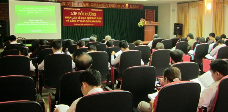 Tiếp tục triển khai hoạt động tăng cường năng lực cho cán bộ thực hiện công tác hỗ trợ pháp lý cho doanh nghiệp trong khuôn khổ của Chương trình hỗ trợ pháp lý liên ngành dành cho doanh nghiệp giai đoạn 2010 - 2014 (sau đây gọi là Chương trình 585), ngày 29/10/2012, tại tỉnh Tuyên Quang, Cục Đăng ký quốc gia GDBĐ đã phối hợp với Ban Quản lý chương trình 585 tổ chức thành công lớp tập huấn, bồi dưỡng pháp luật về giao dịch bảo đảm (GDBĐ) và đăng ký GDBĐ.
