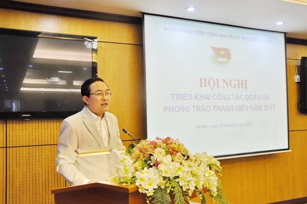 Phát biểu chỉ đạo, đồng chí Nguyễn Kim Tinh, Phó Bí thư thường trực Đảng ủy Bộ Tư pháp ghi nhận và đánh giá cao những kết của công tác Đoàn năm 2016. Đồng chí nhấn mạnh, tuổi trẻ phải sôi nổi, hăng hái, xung kích cống hiến, góp phần hoàn thành nhiệm vụ chung của Bộ, của Ngành; nghiêm túc chấp hành kỷ cương, kỷ luật, văn hóa công sở, thời giờ làm việc; tập trung giáo dục truyền thống, chính trị, tư tưởng; tổ chức thành công Đại hội Đoàn thanh niên Bộ Tư pháp giai đoạn 2017-2022. Bên cạnh đó, Đoàn thanh niên cần hưởng ứng và có những việc làm cụ thể triển khai chủ trương của Chính phủ và Trung ương  Đoàn Thanh niên cộng sản Hồ Chí Minh về thanh niên khởi nghiệp; đề xuất nhận các phần việc chuyên môn và tổ chức triển khai nhằm tăng cường sự gắn kết giữa công tác Đoàn với thực hiện nhiệm vụ chính trị, chuyên môn; phối hợp thực hiện có hiệu quả Chương trình phát triển thanh niên Bộ Tư pháp giai đoạn 2011-2020…