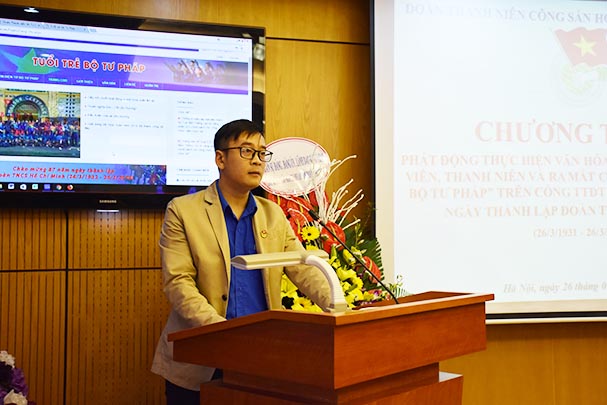 Chiều 26/3, nhân dịp kỷ niệm 87 năm Ngày thành lập Đoàn TNCS Hồ Chí Minh (26/3/1931 – 26/3/2018), Đoàn Thanh niên Bộ Tư pháp đã tổ chức phát động phong trào thực hiện văn hóa công sở trong đoàn viên, thanh niên Bộ Tư pháp và ra mắt chuyên mục “Tuổi trẻ Bộ Tư pháp” trên Cổng thông tin điện tử Bộ Tư pháp.