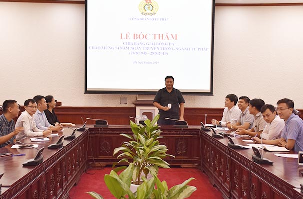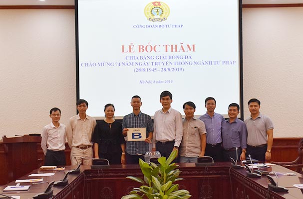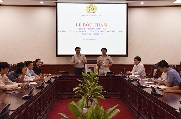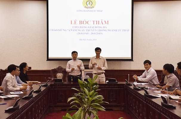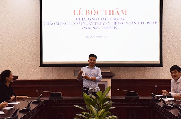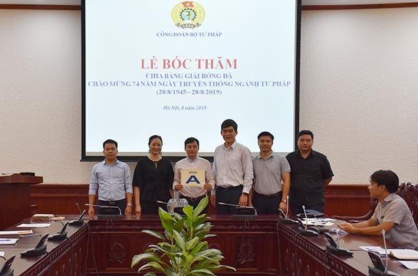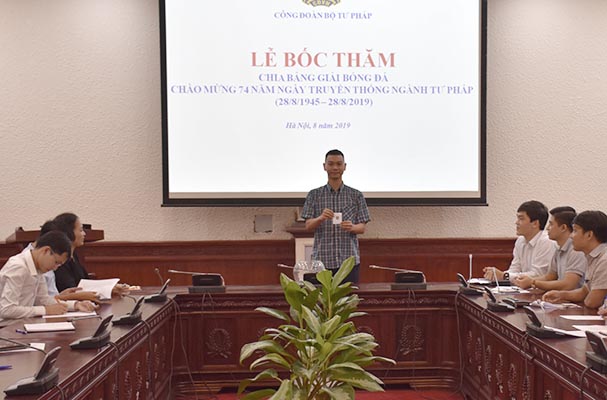 Thiết thực chào mừng kỷ niệm 74 năm Ngày truyền thống ngành Tư pháp Việt Nam (28/8/1945 - 28/8/2019), chiều ngày 05/8, các đội bóng tham dự Giải bóng đá đã tiến hành bốc thăm chia bảng để chuẩn bị cho giải đấu dự kiến sẽ bắt đầu khởi tranh vào ngày 07/8 sắp tới. Tham dự buổi Lễ có các đồng chí Khương Thị Thanh Huyền, Phó Chánh Văn phòng Đảng - Đoàn thể, Chủ tịch Công đoàn, Trưởng Ban tổ chức giải; Đặng Trần Anh Tuấn, Phó Cục trưởng Cục con nuôi, Trưởng tiểu ban bóng đá; Đại diện Đoàn Thanh niên Bộ; các thành viên trong Tiểu ban và đại diện các đơn vị tham dự Giải.